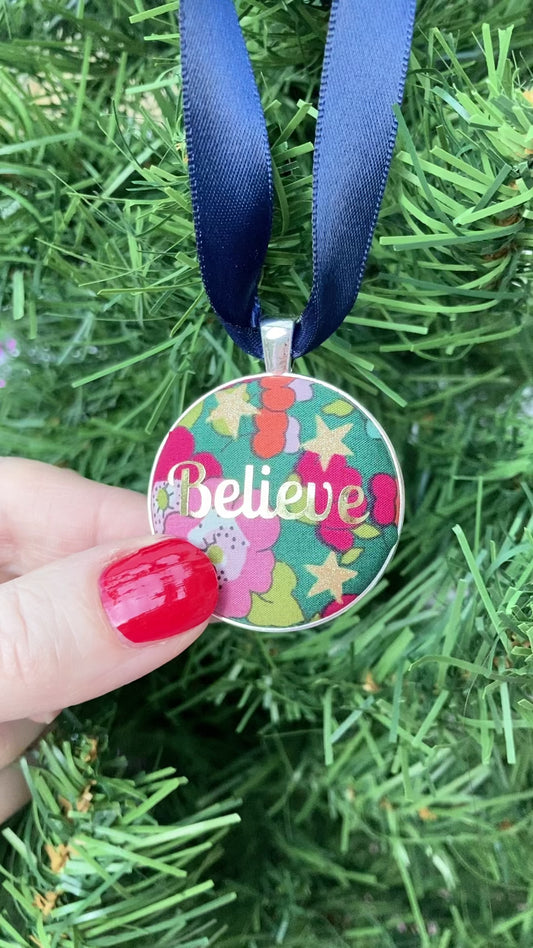 Believe Christmas Keepsake - Green with Gold Stars