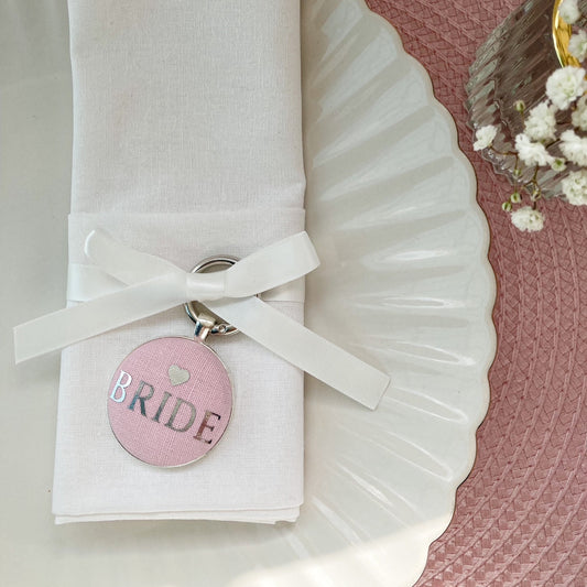 Create a beautiful & unique Wedding Breakfast table design with these handmade Wedding Place Setting Favours. Made with Liberty of London fabrics & linens and printed with your guests initials; they make a lovely favour gift from your wedding day and can be used as a keyring, a bag charm or a thoughtful keepsake.
