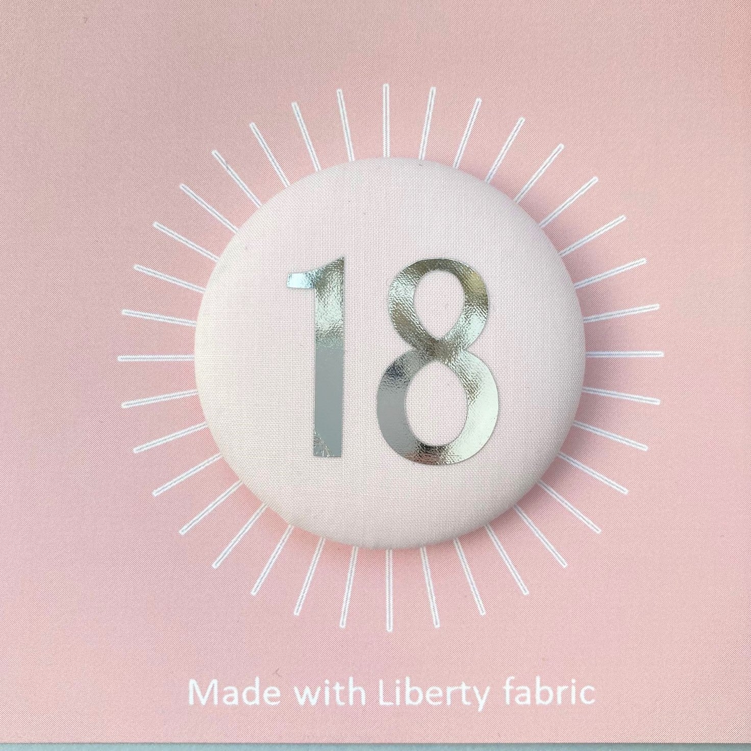 Made with Liberty fabric in a beautiful pale pink shade, with the age of your choice printed in silver foil. Simply add your chosen number to the comments box at checkout.