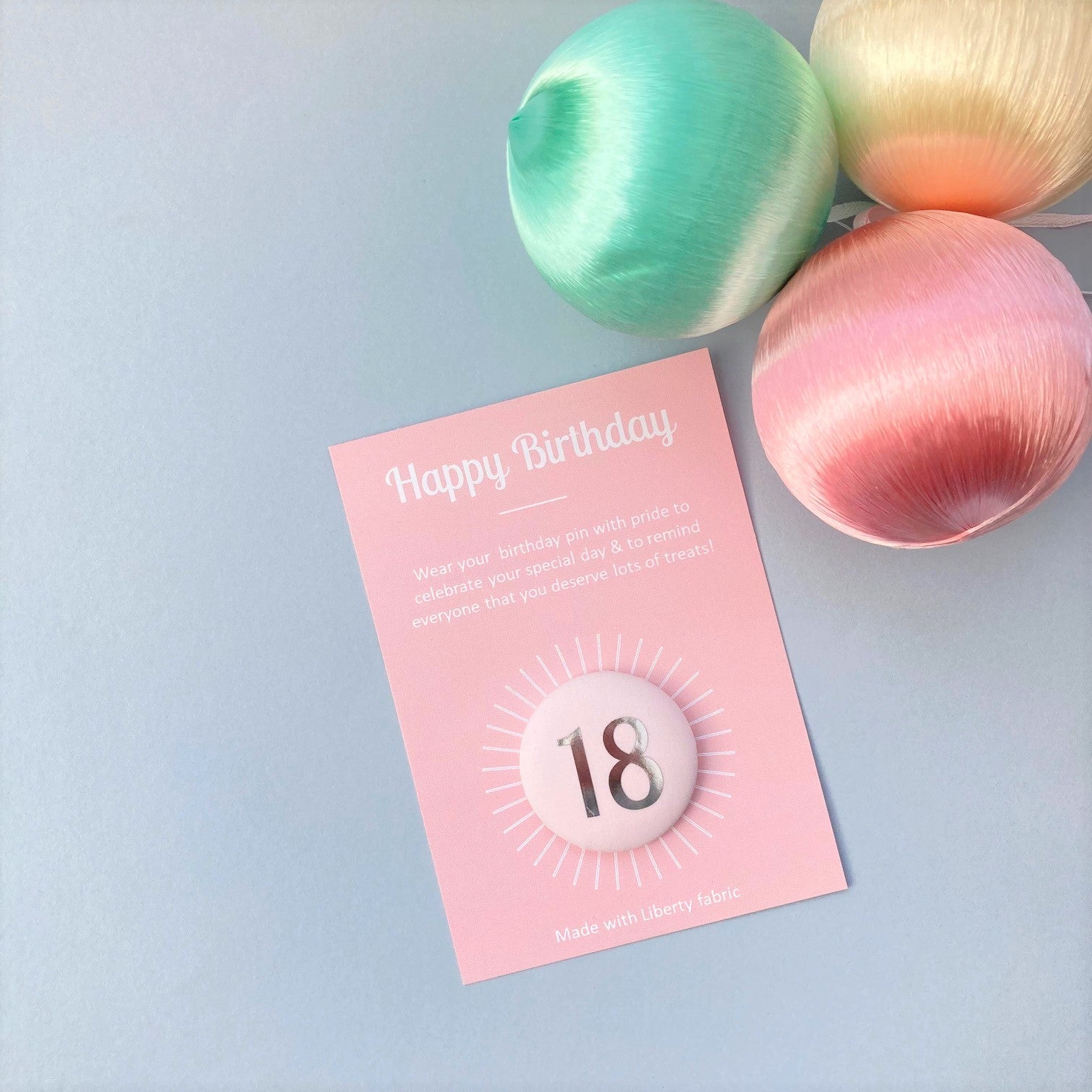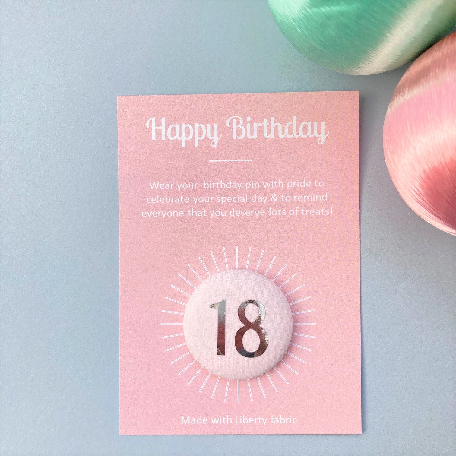 Your pin will be made to order and presented on a Happy Birthday Postcard, all ready for giving.