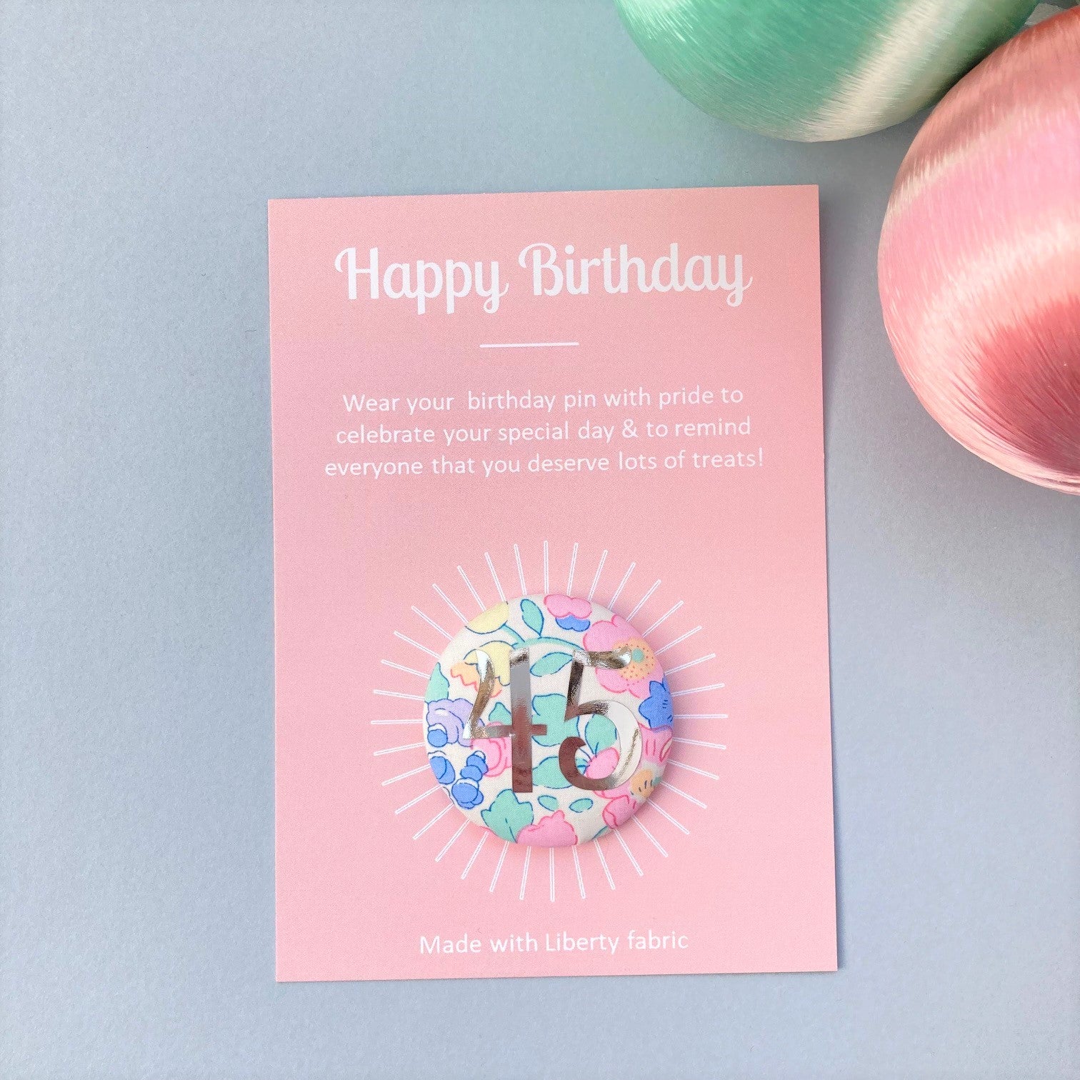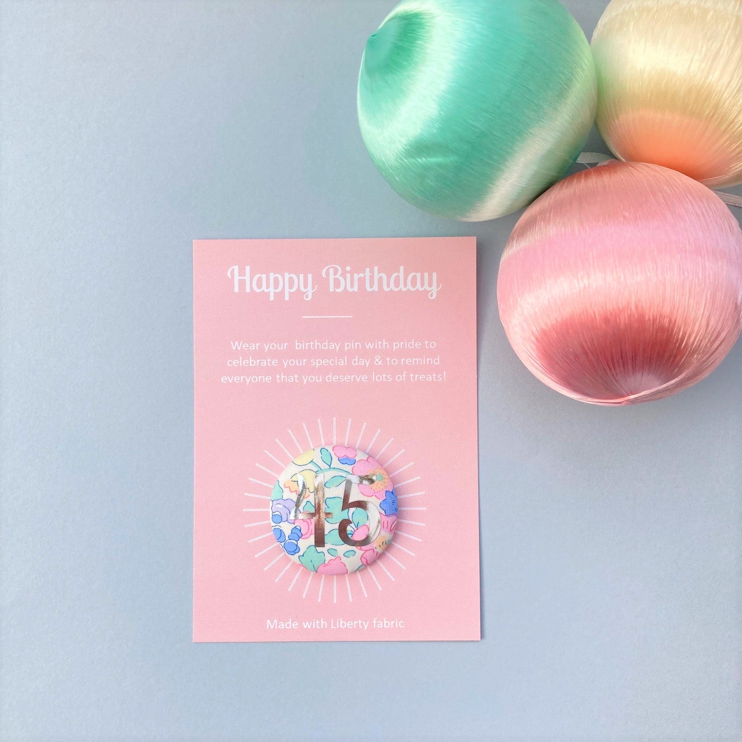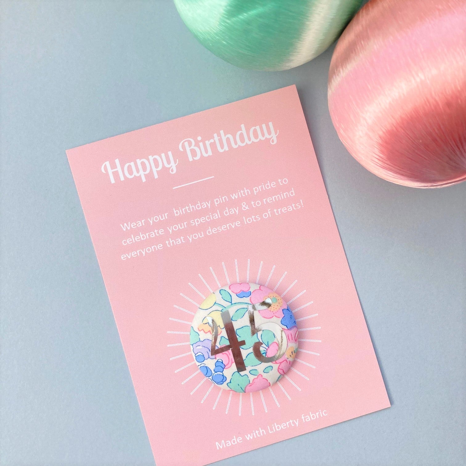 Your pin will be made to order and presented on a Happy Birthday Postcard, all ready for giving.